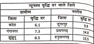 #2. राजस्थान का जिला जहां 2001-2011 की अवधि में ग्रामीण जनसंख्या में न्यूनतम प्रतिशत दशकीय परिवर्तन अंकित गया है, वह है- [Statistical Officer 20 Dec 2021 ]