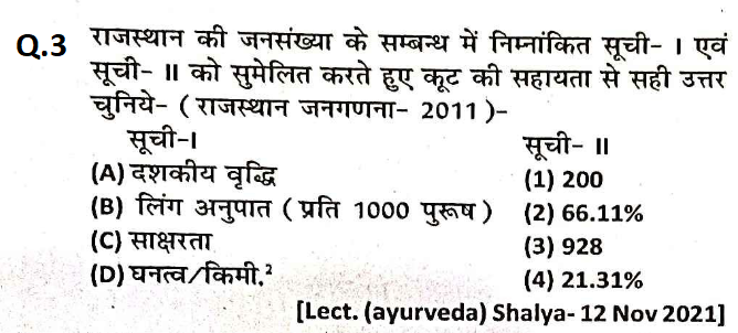 #1. 2001 की तुलना में, 2011 की जनगणना के अनुसार, राजस्थान के नगरीय क्षेत्रों में लिंगानुपात प्रति 1000 पुरूषों पर कितनी महिलाओं से बढ़ा है? [VDO 27 Dec. 2021 Shit I]